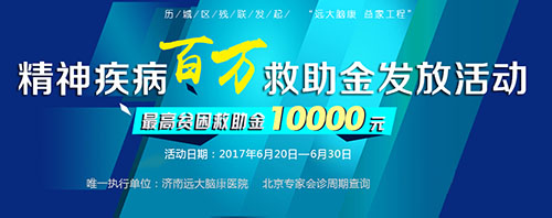 济南远大中医脑康医院为了切实解决贫困家庭因病致困,因病致残的社会现象,从而在根本上解决患者面临的“看病贵、看病难”的就诊难题,同时响应国家对脑部疾病患者救助政策,让更多的患者得到科学、规范的治疗,让更多因贫患者得到及时医治。